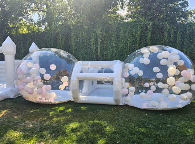 The first and only one of its kind in Tennessee! The Double Bubble features two connected transparent domes, offering double the fun and space for your guests. This unique inflatable is perfect for larger events, parties, or anyone looking to add a touch of excitement to their celebration. Customize each dome to fit your theme and create an unforgettable experience for everyone.